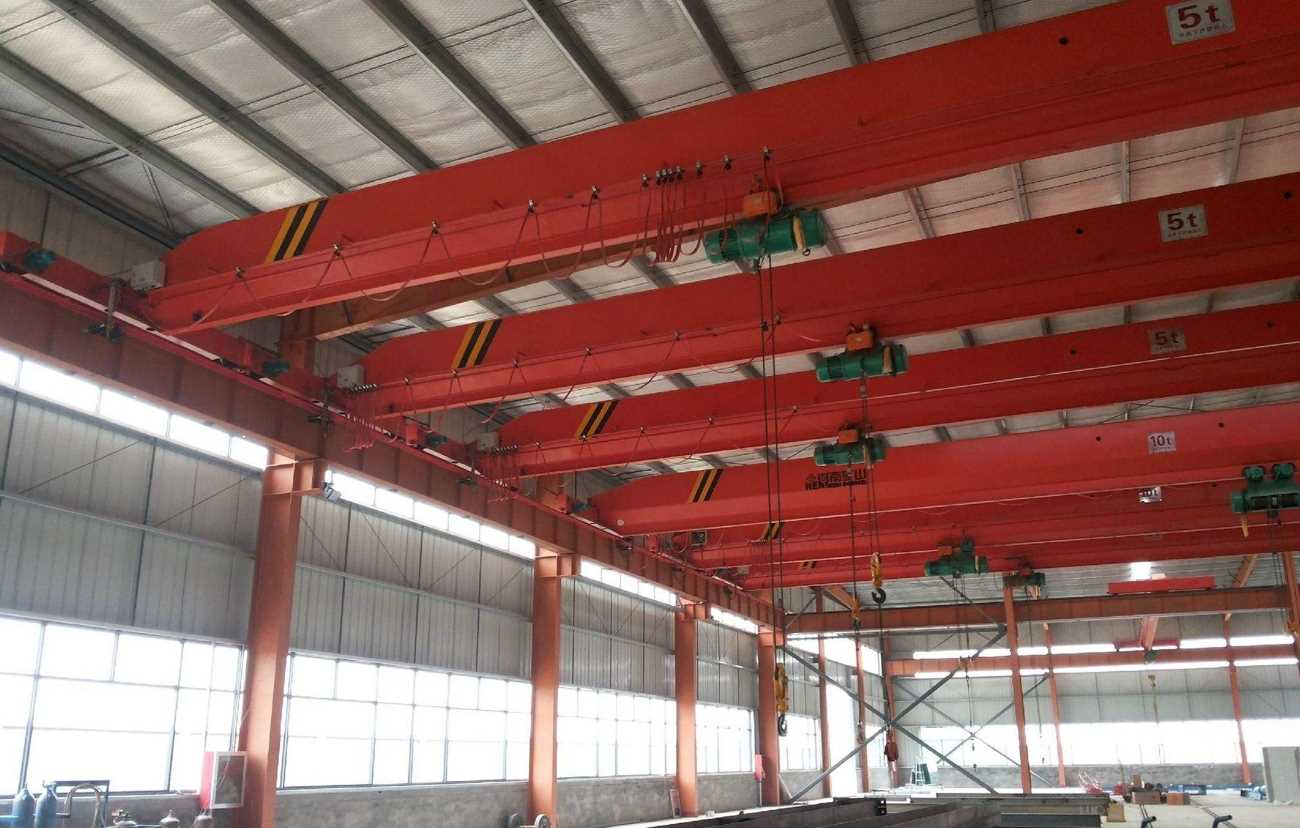 電動單梁起重機(jī)由鋼板與工字鋼組焊成的主梁、端梁、電動葫蘆及運(yùn)行機(jī)構(gòu)組成,電動葫蘆沿主梁工字鋼下翼緣運(yùn)行,完成物品的吊運(yùn)工作,具有結(jié)構(gòu)輕巧、安裝維護(hù)方便等特點(diǎn),廣泛應(yīng)用于工廠、倉庫、料場等不同場合吊運(yùn)貨物,禁止在易燃、易爆、腐蝕性介質(zhì)環(huán)境中使用。工作級別為A3-A5。操作方式設(shè)有地面手柄、無線遙控和司機(jī)室三種操作形式。駕駛室有開式、閉式兩種。大車運(yùn)行采用分別驅(qū)動形式,錐型電機(jī)制動,開式齒輪傳動。
